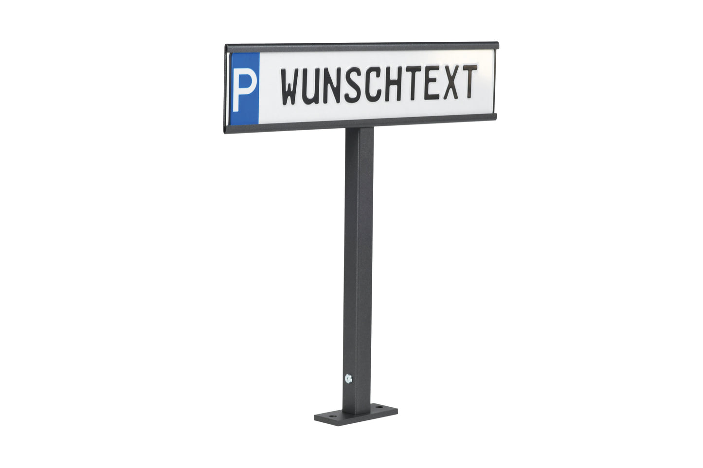 Die hochwertige Pulverbeschichtung in Anthrazit schützt zuverlässig vor Rost, UV-Strahlung und Witterungseinflüssen. Dank des werkzeuglosen Schilderwechsels lassen sich Kennzeichen oder Parkplatzschilder jederzeit schnell austauschen – eine langlebige und flexible Lösung für jede Umgebung.